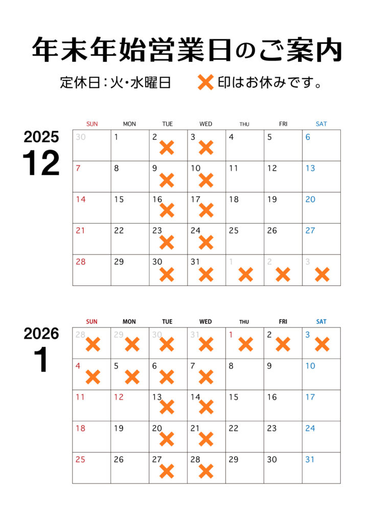 年末年始の営業日程についてです。