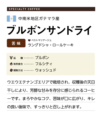 ウエウエテナンゴエリアで栽培され、収穫後の天日干しにより、芳醇な甘みを存分に感じられるコーヒーです。